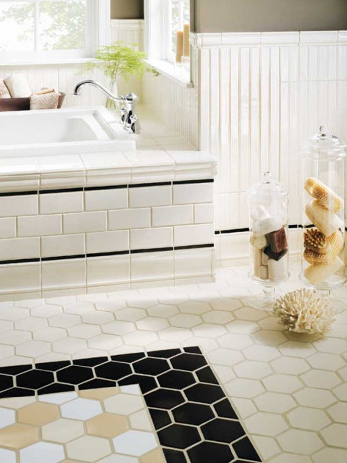 سيراميك حوائط وارضيات حمامات سيراميك حوائط وارضيات حمامات ابيض واسود مربعات مع بانيو انيق ابيض اللون ...