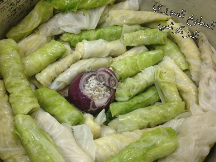 : مممممم من اطيب المحاشي وألزًا ولتحضيرن منحتاج اول شي نسلق ورق الملفوف ، ونقص منو الأطراف الخشنة ثم بيصير جاه...