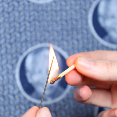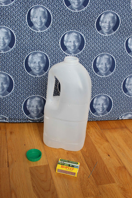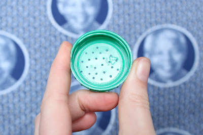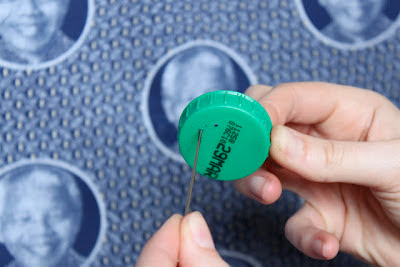 ثانيا: نضع إبرة ذات حجم متوسط على النار, و عندما تأخذ الإبرة كمية مناسبة من الحرارة, نبدأ بإنشاء ثقوب بغطاء القنينة كما هو مبين في الصور.