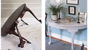رغم مرور سنوات على وجود الطاولة في المنزل، لا زالت هناك فرصة لاستخدامها بشكل مختلف. قيسي أبعادها جيدا، وارسمي خطا عند المنتصف تماما باستخدام القلم الرصاص. اطلبي من إحدى ورش أعمال النجارة القيام بقسمها إلى نصفين باستخدام المنشار الكهربائي. اطليها بلون بعيد تماما عن لونها الأصلي، وثبتيها بالحائط عند مدخل المنزل، وبذلك تكوني قد حولتها إلى كونسول جديد.