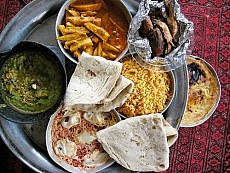 الافطار كبده وفول وشاهي عدني و خبز التنور و شكشوكه