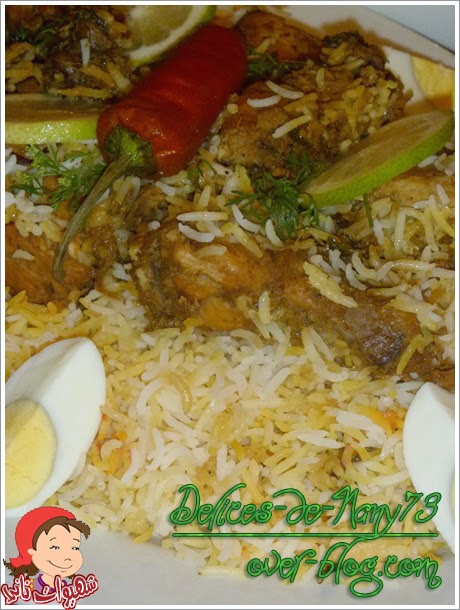 بعد ان يجهز الدجاج و الأرز نبدأ في تركيب البرياني
