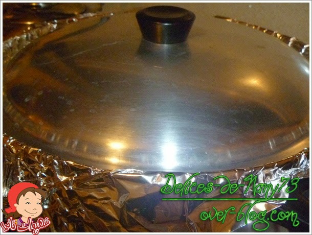 ثم تغلف الطنجرة بورق الألمنيوم و تغطى بإحكام و توضع على نار هادئة مدة ثلث ساعه أو حتى يتبخر كل السائل و ينضج الأرز تماما