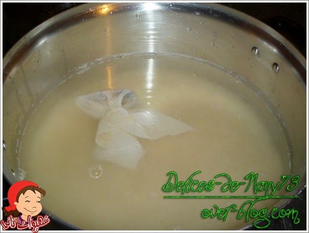 يغلف الإناء بالبلاستيك الغذائي و يترك ينقع جيدا في الثلاجه مدة ساعتين على الأقل