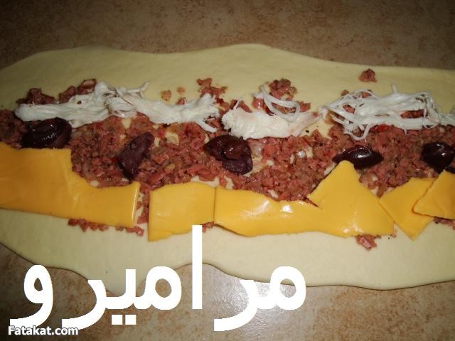 الفيلنج هنا كان سوسيس مفري و زيتون اسود و شيدر