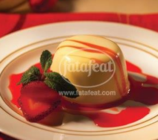 4. تغمس الأوعية واحدًا تلو الآخر في وعاء من الماء الساخن لمدة 3 ثوان، ثم يمرر سكين حول حافة كل وعاء منها قل أن تقلب الباناكوتا في منتصف طبق صغير الحجم وتزين بالفراولة وأوراق النعناع وشراب الفراولة.