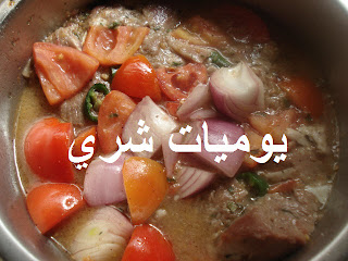 تخلط جميع المكونات معا ثم يوضع قطع اللحم في التتبيلة وتترك طوال الليل (انا حطيت مكعبات البصل والفلفل الاخضر والطماطم معاهم حتي تتشرب التتبيلة