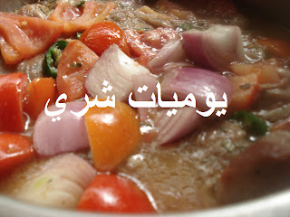 مربعات من الطماطم والفلفل الاخضر ومربعات من البصل وتوضع مع خليط النقعو(يوضع في الاسياخ او الاشياش مع مكعبات اللحم )
