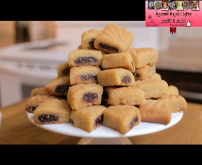 - في اليوم التالي، نأخذ كمية من العجينة ونطريها براحة اليد ثم تشكل لولب، نضع حفرة فيه على كل طول اللولب ونضع فيه حشوة التمر ثم ترجع أطراف العجينة على الحشوة لكي تغطيها وتغلف جيداً ثم تنقش بالطابع ويرسم عليها شكل وردة أو أي شكل آخر وتقطع مربعات بزوايا طويلة نوعاً ما، ترص في الصينية الحبة جنب الأخرى بحيث تلتقي الحشوة ببعضها