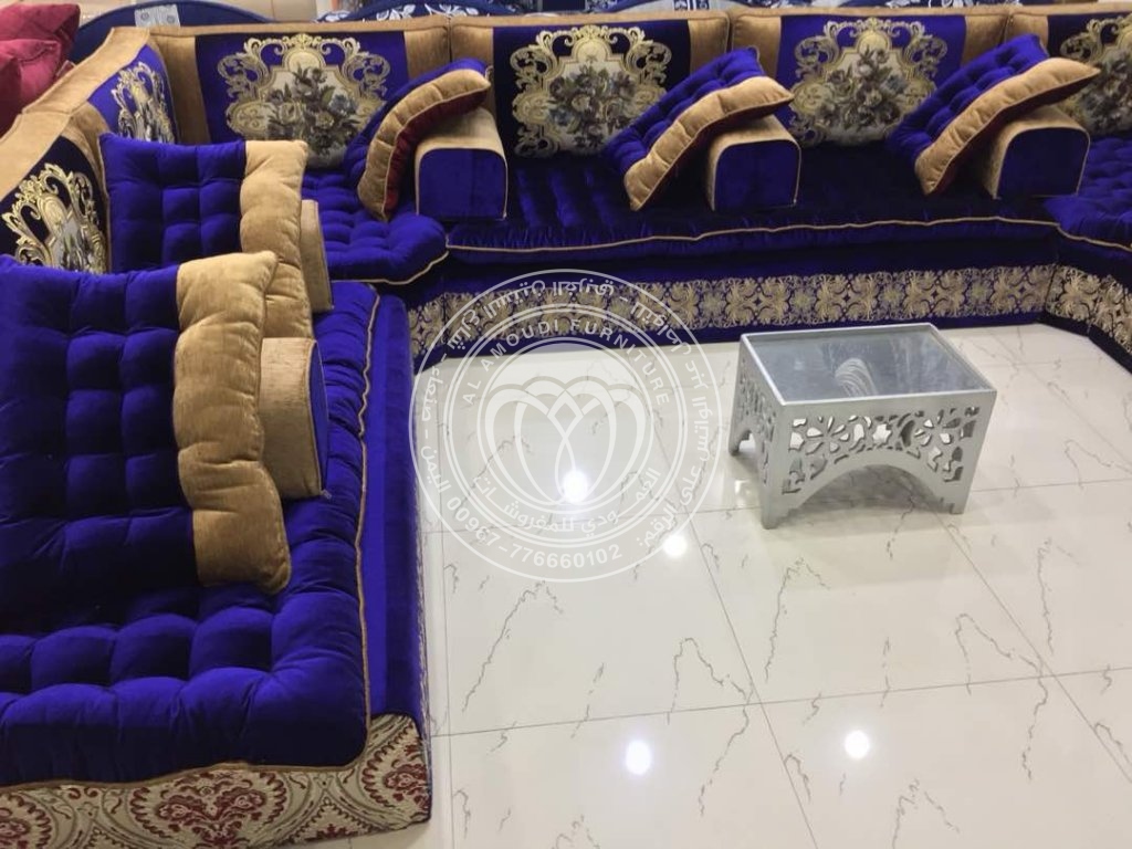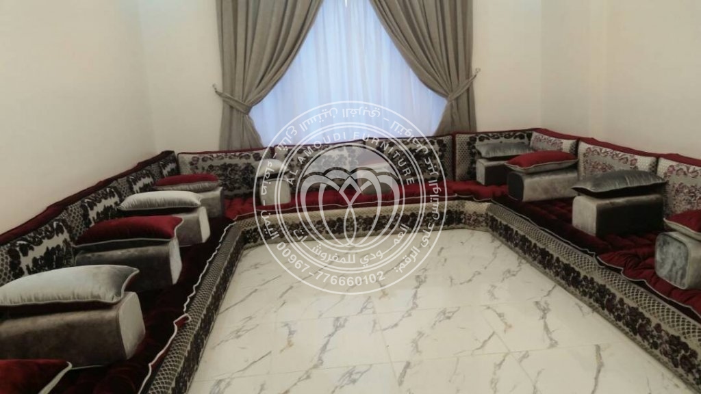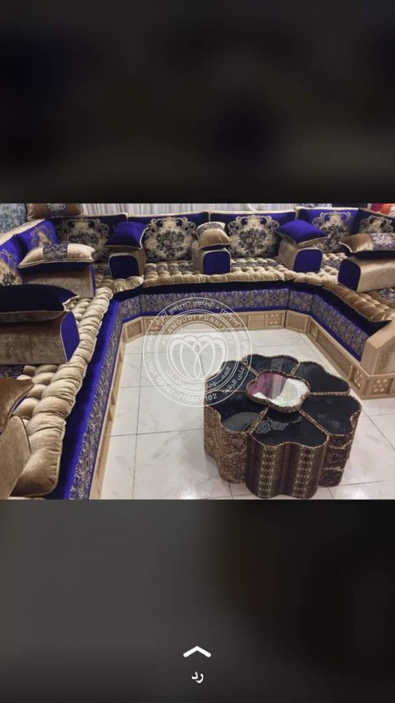 مجالس عربية فخمة يجميع الأشكال وأفضل الأقمشة مقدمة من العمودي للمفروشات صنعاء مفروشات ومجالس عربية وكذلك جميع أنواع الستائر والكنب بجودة خارجية… يمكننا تفصيل مجالس عربية حسب الطلب او الصور حتى من خارج اعمالنا المعروضة..كذلك عمل عدة أشكال لـ طاولات مجلس عربي وكذلك تصميم جميع احتياجات الأثاث المنزلي